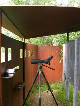 Tijdens de wandelroute Naardermeer van Natuurmonumenten komt u onder andere langs de Hilversumse Bovenmeent, inclusief dit hypermoderne stalen kijkscherm (vandalismeproof). U kunt hier vaak grote zilverreigers, lepelaars en steltlopers zien.
